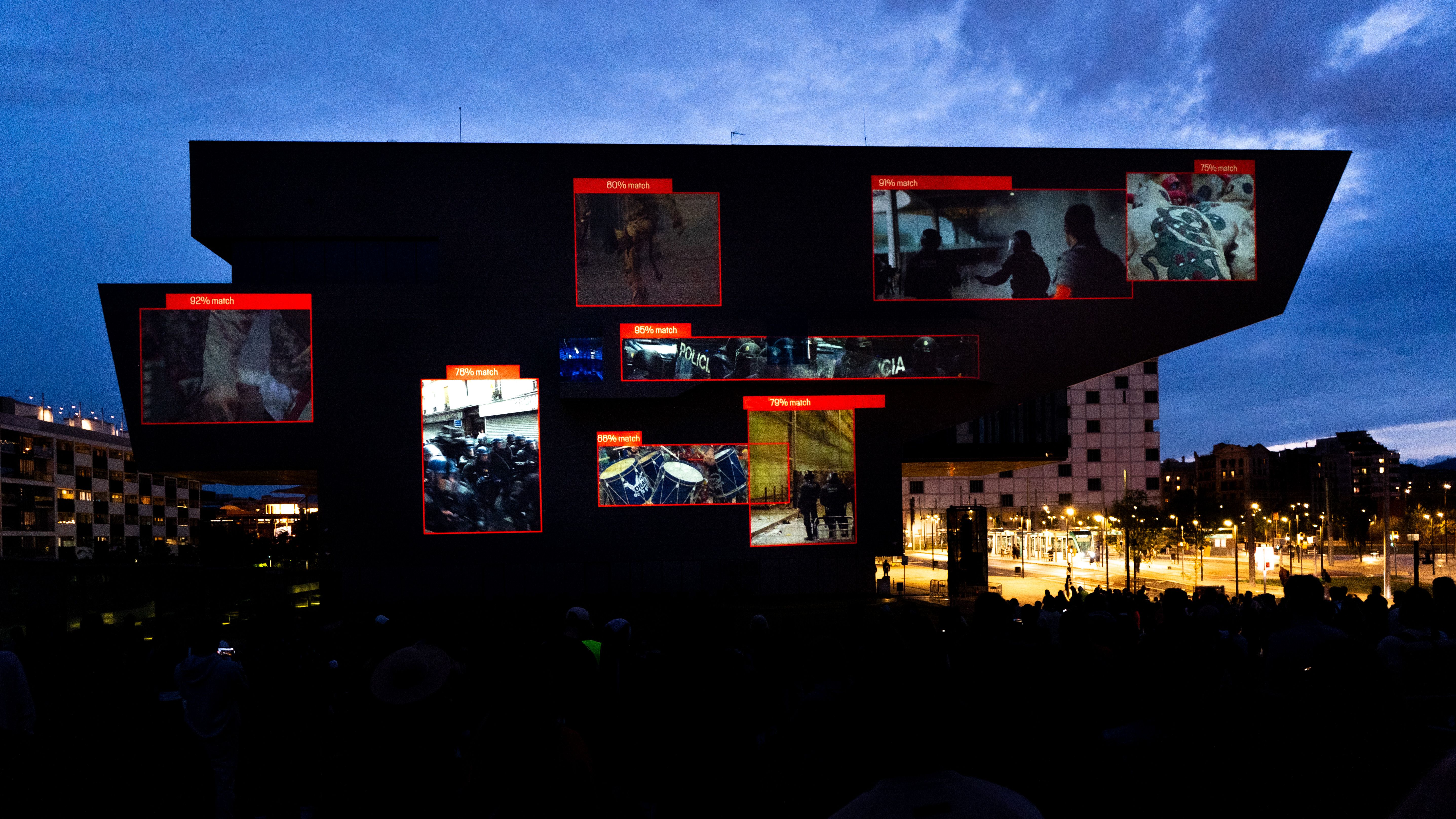 This algorithmic blindness isn’t accidental but structural. Developed within Silicon Valley’s monocultural framework and trained on Western datasets, these systems impose a binary worldview that sees order and chaos as opposing forces rather than interconnected elements of social expression. The projection installation highlights this by simulating algorithmic readings over authentic footage: “ERROR: 98% match — Riot detected (confidence: 0.92)” flashes over scenes of correfoc participants, while identical confidence scores appear over footage of police charges.