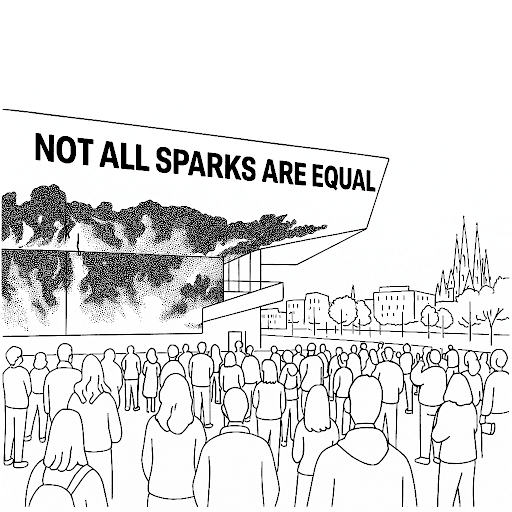 The philosophical underpinnings of “Not All Sparks Are Equal” draw from the concept of “dromology”, the study of how speed transforms society. The idea argues that our contemporary obsession with rapid processing privileges velocity over depth, resulting in a flattening of meaning. In algorithmic surveillance, this “dromological” effect transforms the expansive space of human expression into streams of data points processed at inhuman speeds.
