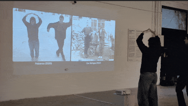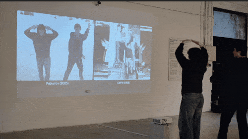 The installation embraces these slippages. When a match is found, the historical image stands side by side with the live participant’s gesture. The projection remains distinct and separate, yet each shows such a striking resemblance that it seems as if they share a silent dialogue across time, an odd motion through times, part archive, part software, part flesh, an image that asks: Who is haunting whom? Are we summoning the past, or is the past summoning us?