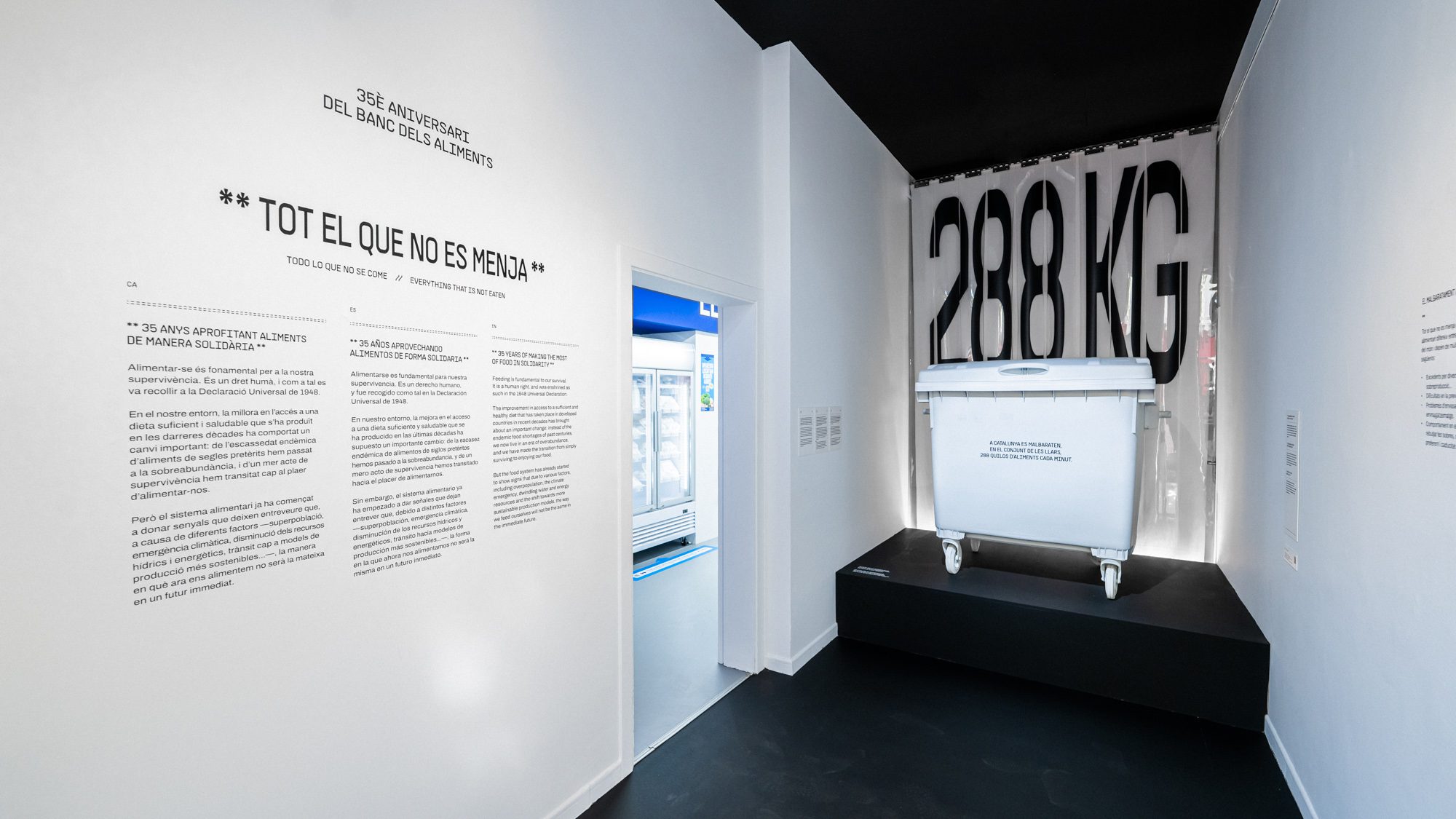 The exhibition was divided into four zones, with each focussing on a different aspect of our relationship with what we eat. The first piece identified the scale of waste, represented in the form of a 228 kilo rubbish container - the quantity of food that's thrown away each minute in Catalonia.