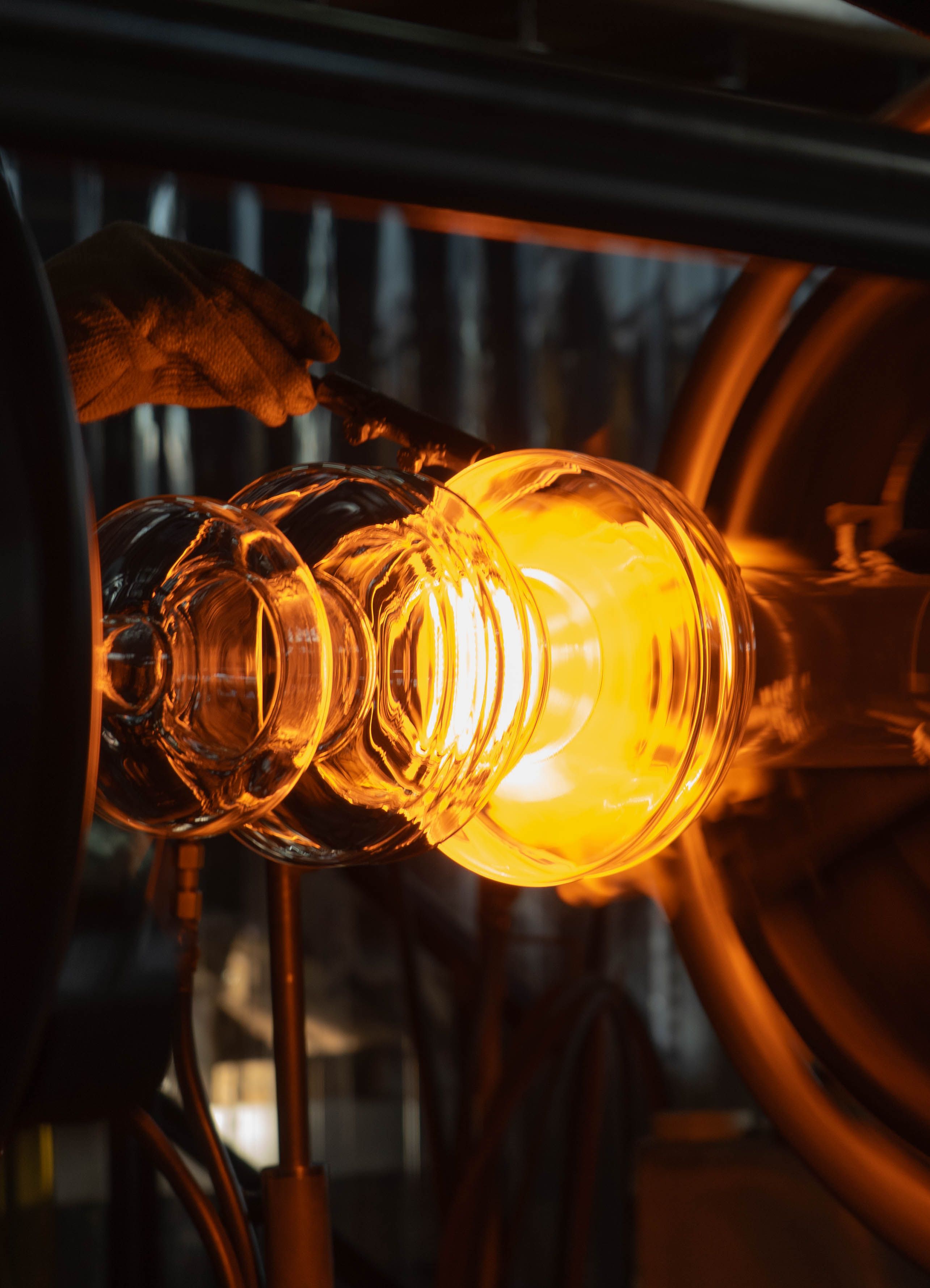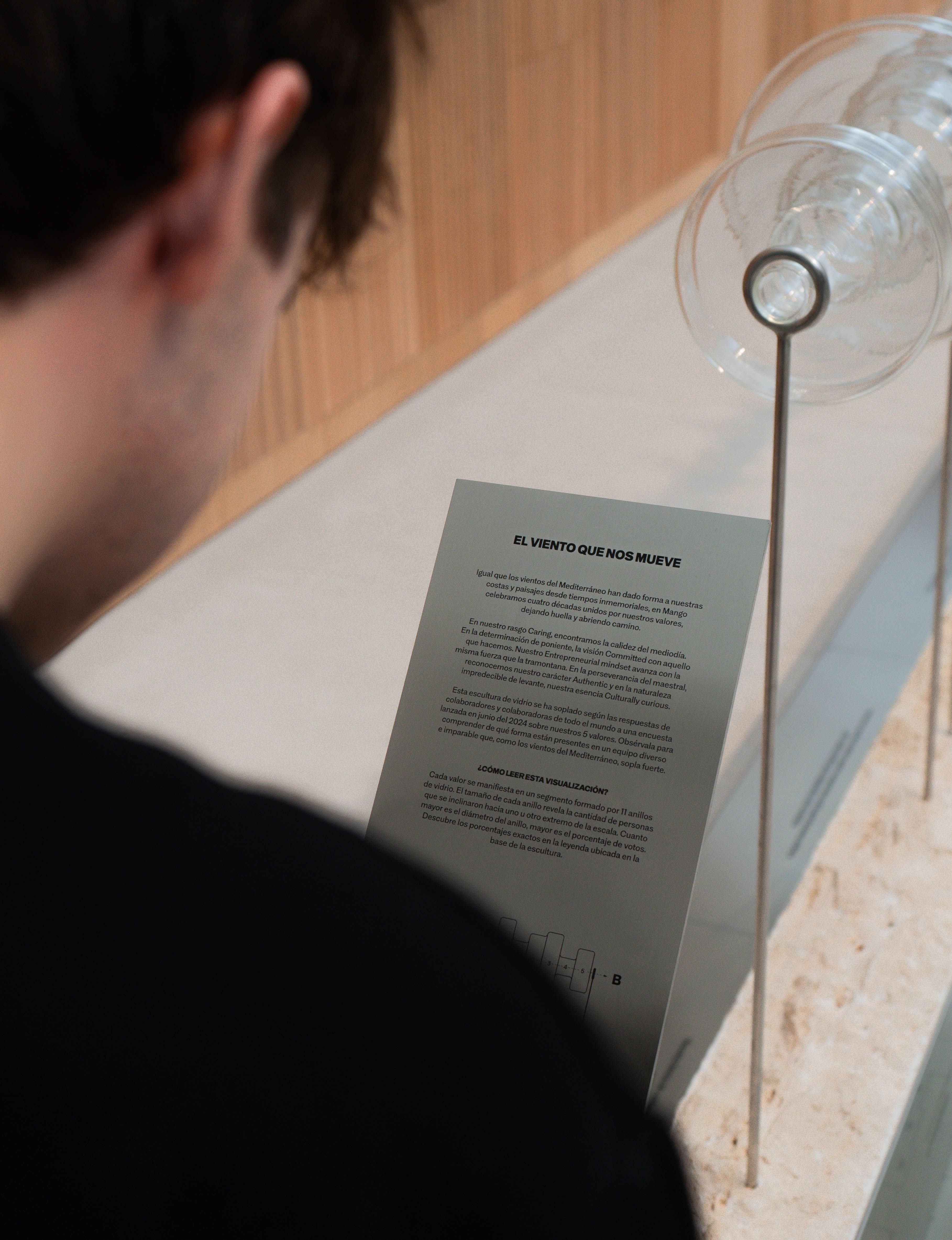 We made the conscious choice of building a modern artisanal creation, as a way to evoke the idea of expertise rooted in tradition, yet still new and creative. We worked with a local glass artist, Ferran Collado, to craft the glass sculpture, and other artisans too, in metalwork and stonecarving. And in order to widen the scope of the installation and connect with retail workers, we also created five smaller-scale replicas of the sculpture.