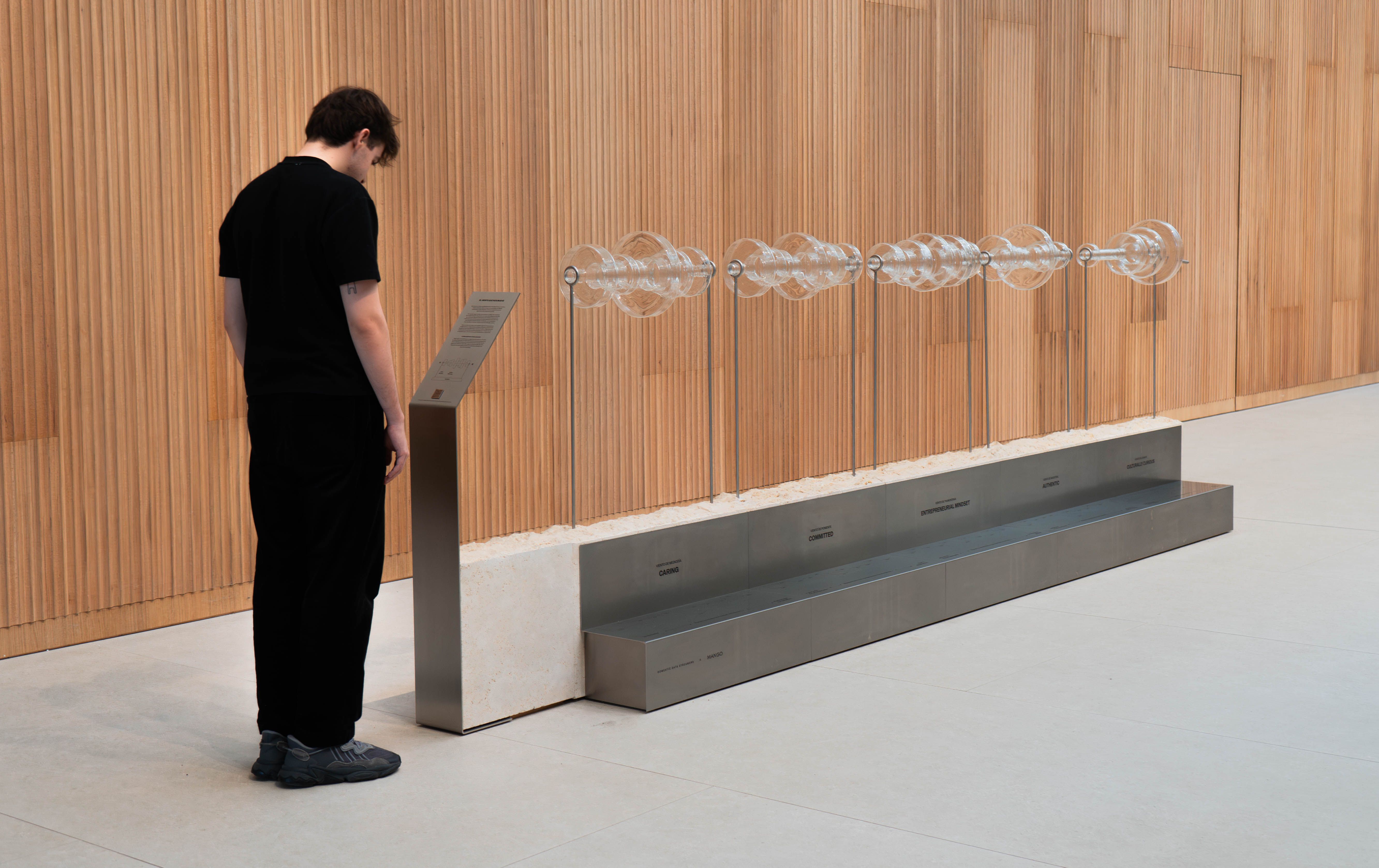 Using this metaphor, we then built a participative sculpture that traces the values of the team of professionals who have brought Mango’s vision to life over the years. At the same time, we documented the process in a short film that would help explain the sculpture’s narrative and emphasize the idea of designing a conceptual piece of contemporary craftsmanship.