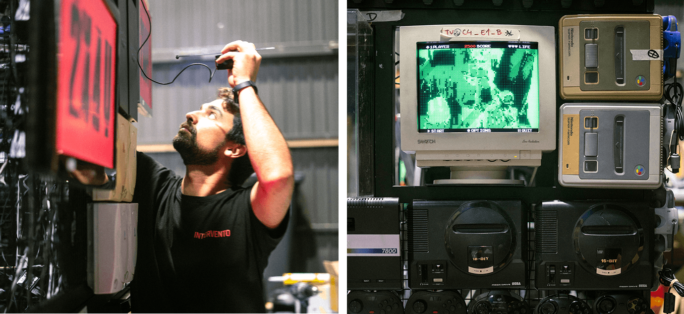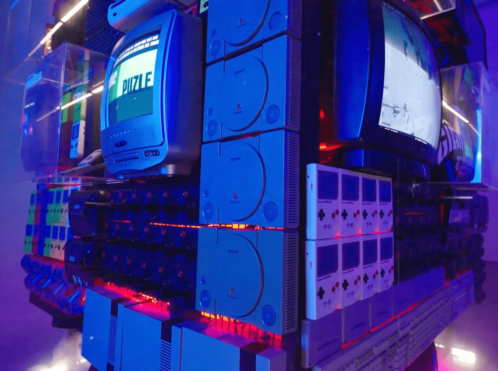 To create an authentic experience each module was made up of original materials from the era, including a total of 685 real consoles, joysticks, headphones and memorabilia that gamers would recognise. At the same time, we had to arrange them in a way that produced a visual harmony between the different faces of the monument, and this required extensive mapping and drafting before construction could begin.