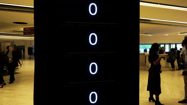 As the video across the 12 screens concluded, participants were prompted with a question: "What can you do to put the clock on track for global immunity?" They could select an option displayed on the screen by physically turning the hands of the clock, symbolising their commitment to action.