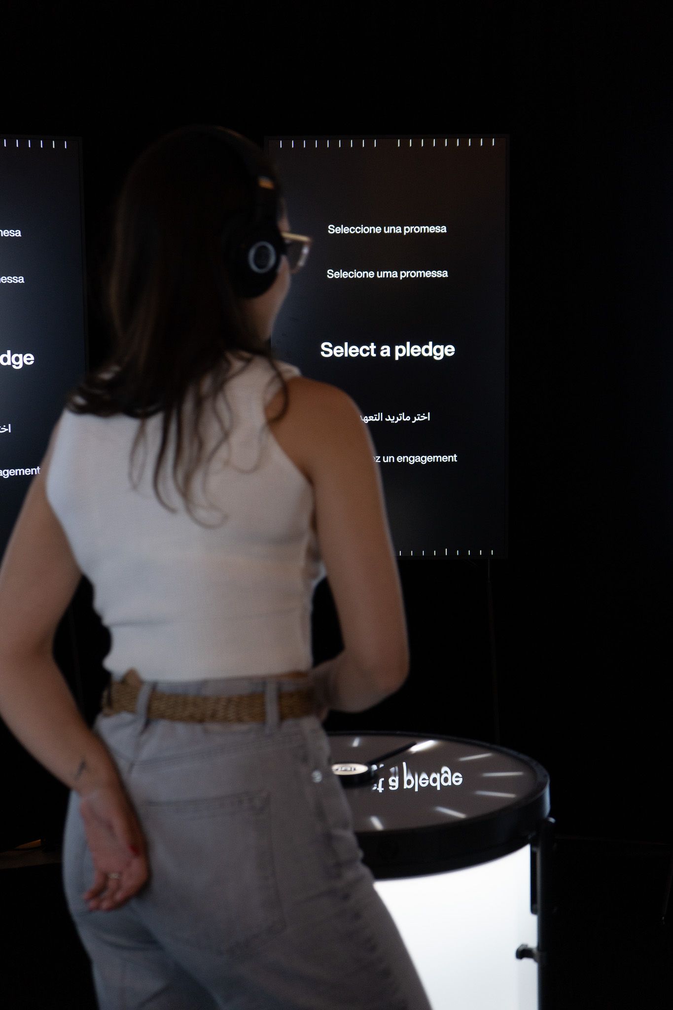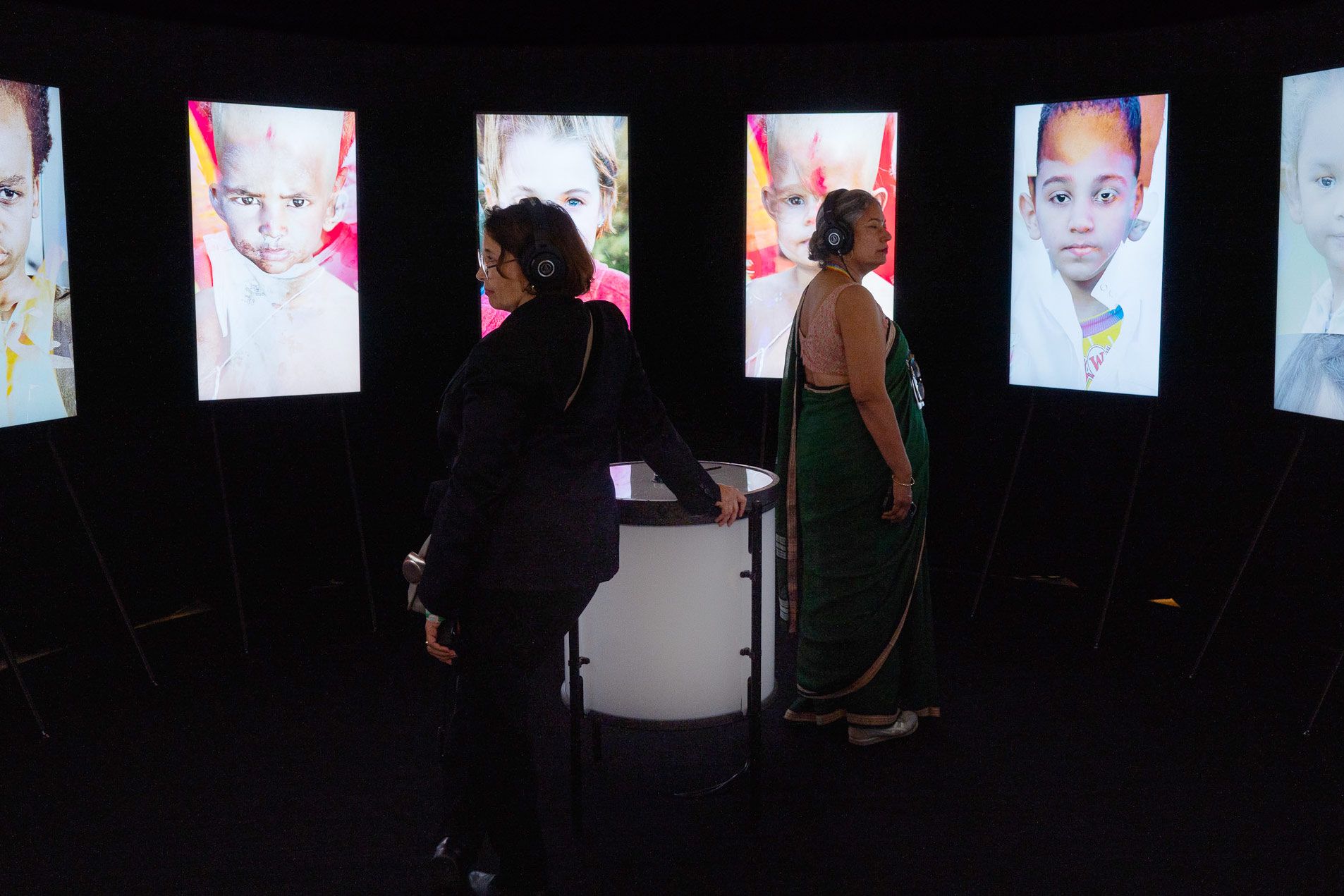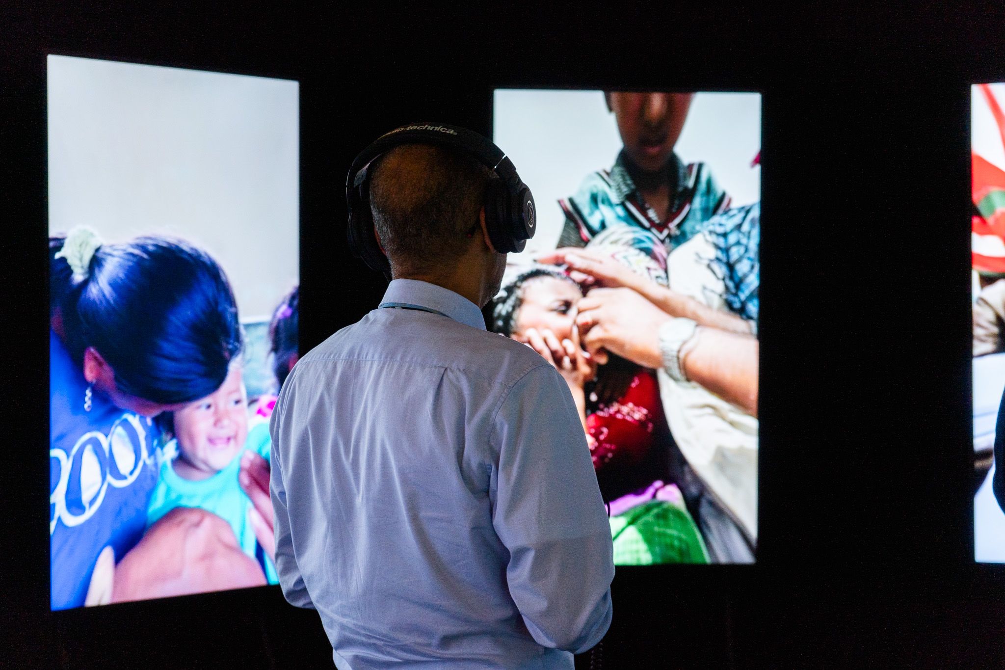 On arrival visitors were greeted by a panel displaying the number of unvaccinated children since the start of the day, setting the tone for the experience. They were then given headphones with language options and audio descriptions, ensuring accessibility.