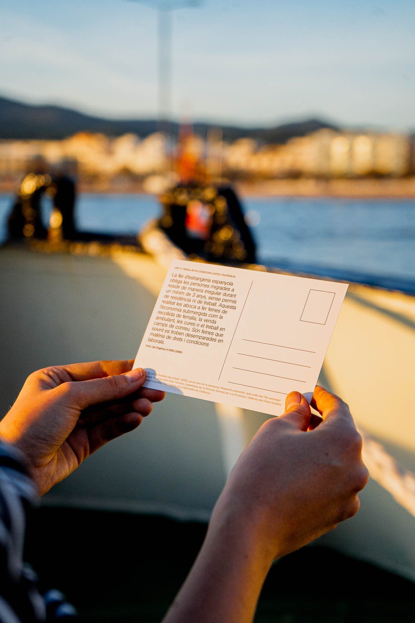 On these postcards we printed the promises with which many migrants arrive, and on the flip side we discover the reality they have to face.