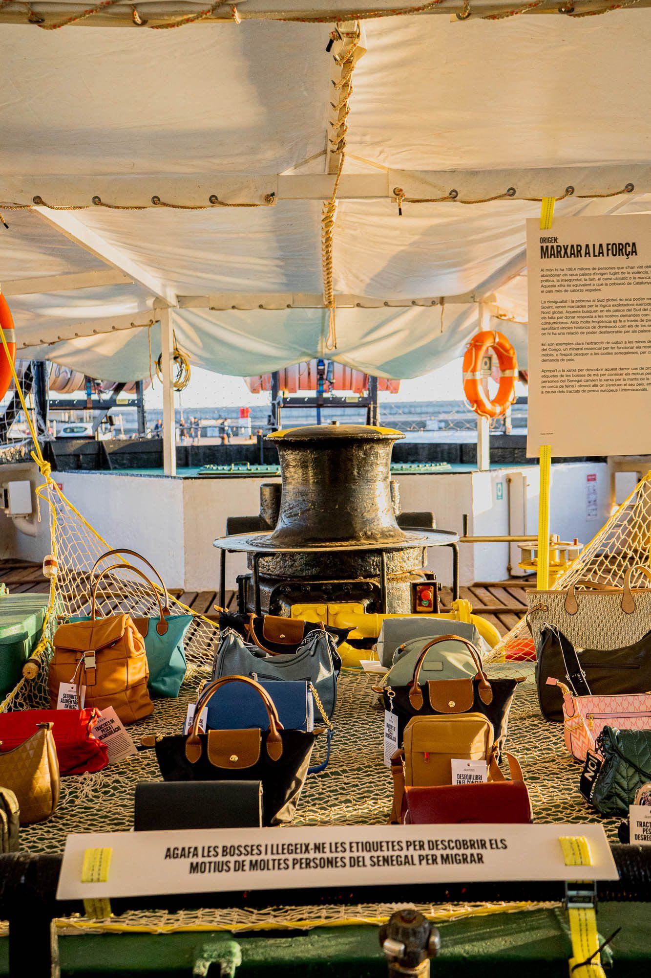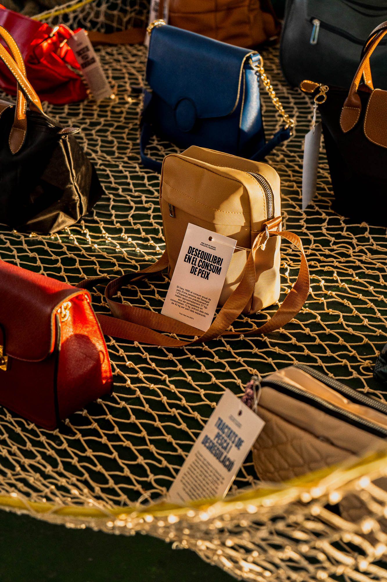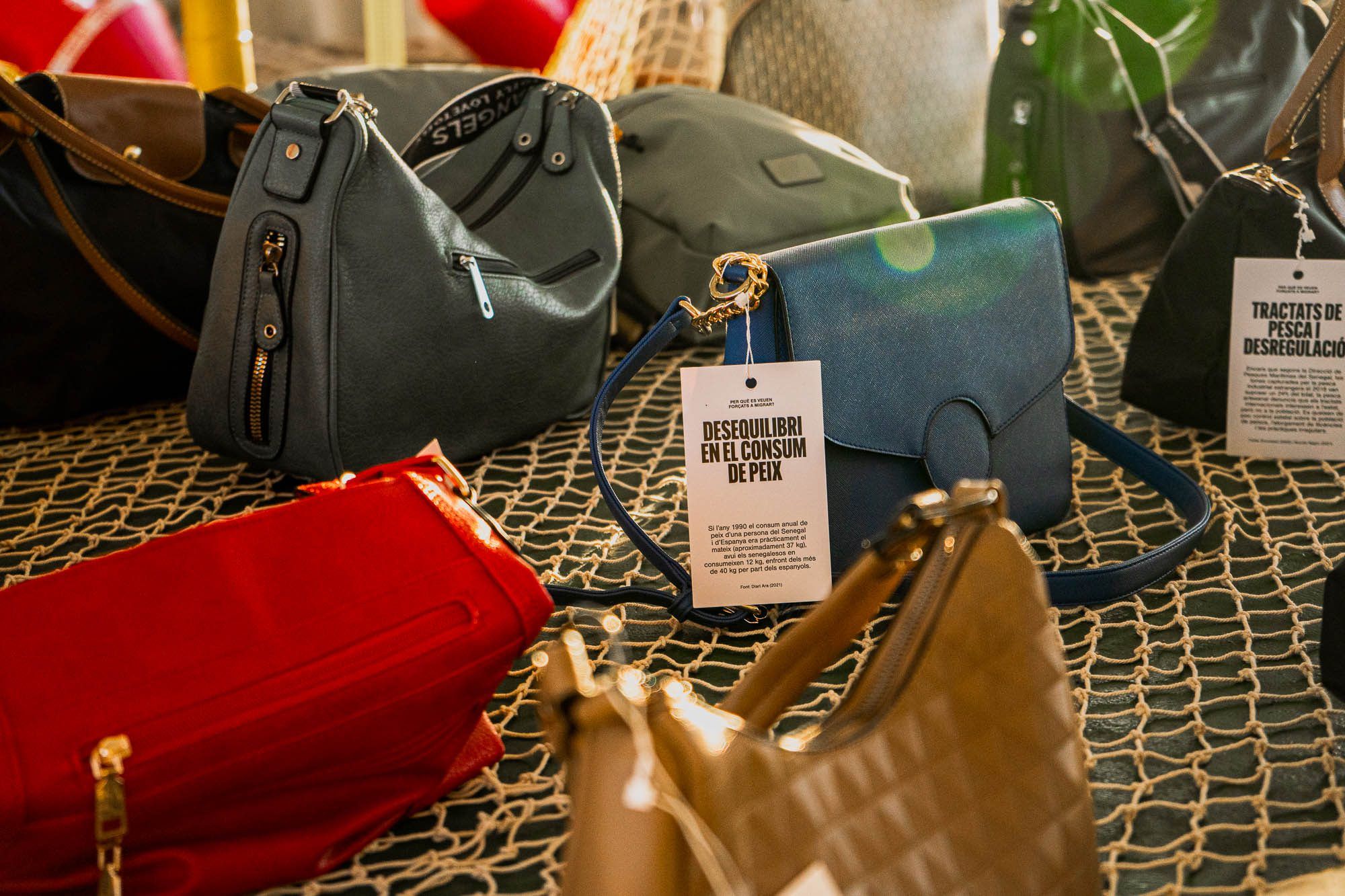 We put labels on these handbags to contextualise why many people from Senegal trade fishing nets for the blanket of street vending, due to European and international fishing treaties.