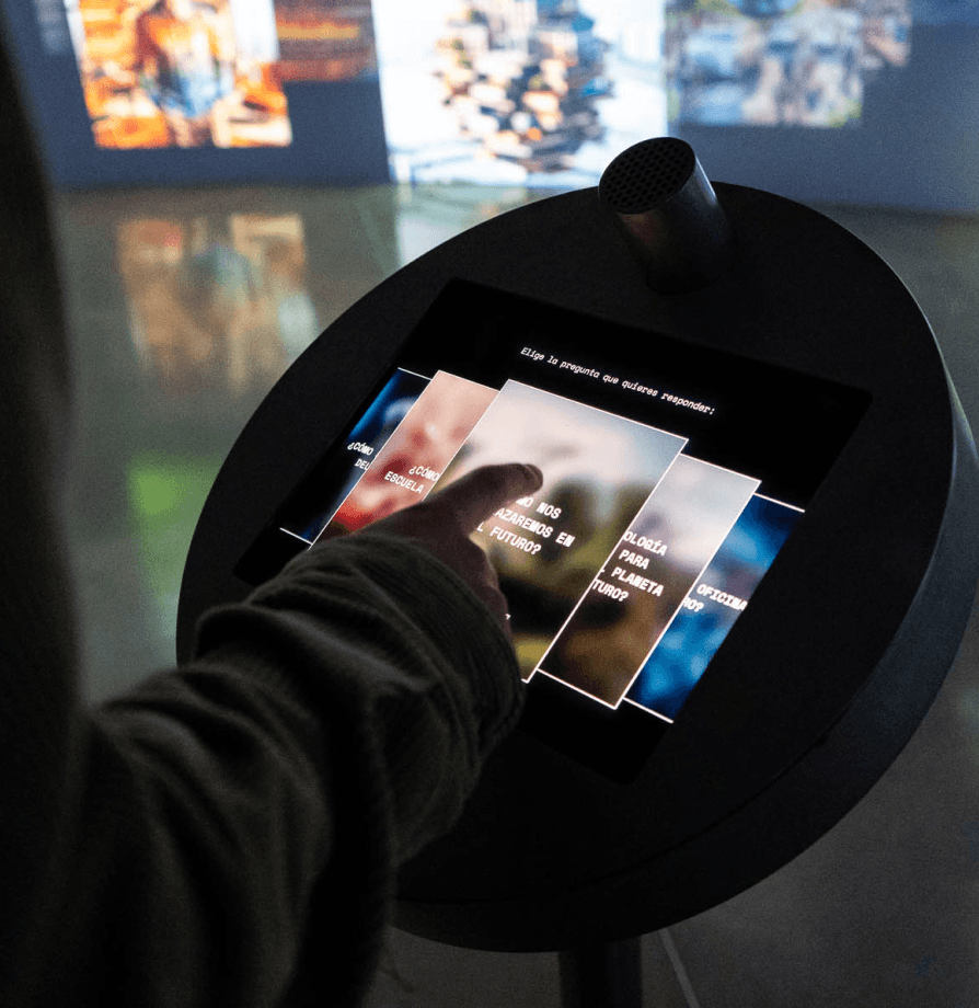 We all live with our hopes and fears about the future, but speaking and sharing them is another matter. This installation, which we designed in collaboration with Mediapro Exhibitions, as part of the new permanent exhibit at the Espacio Fundación Telefónica in Madrid, allows visitors to think out loud about what’s to come.