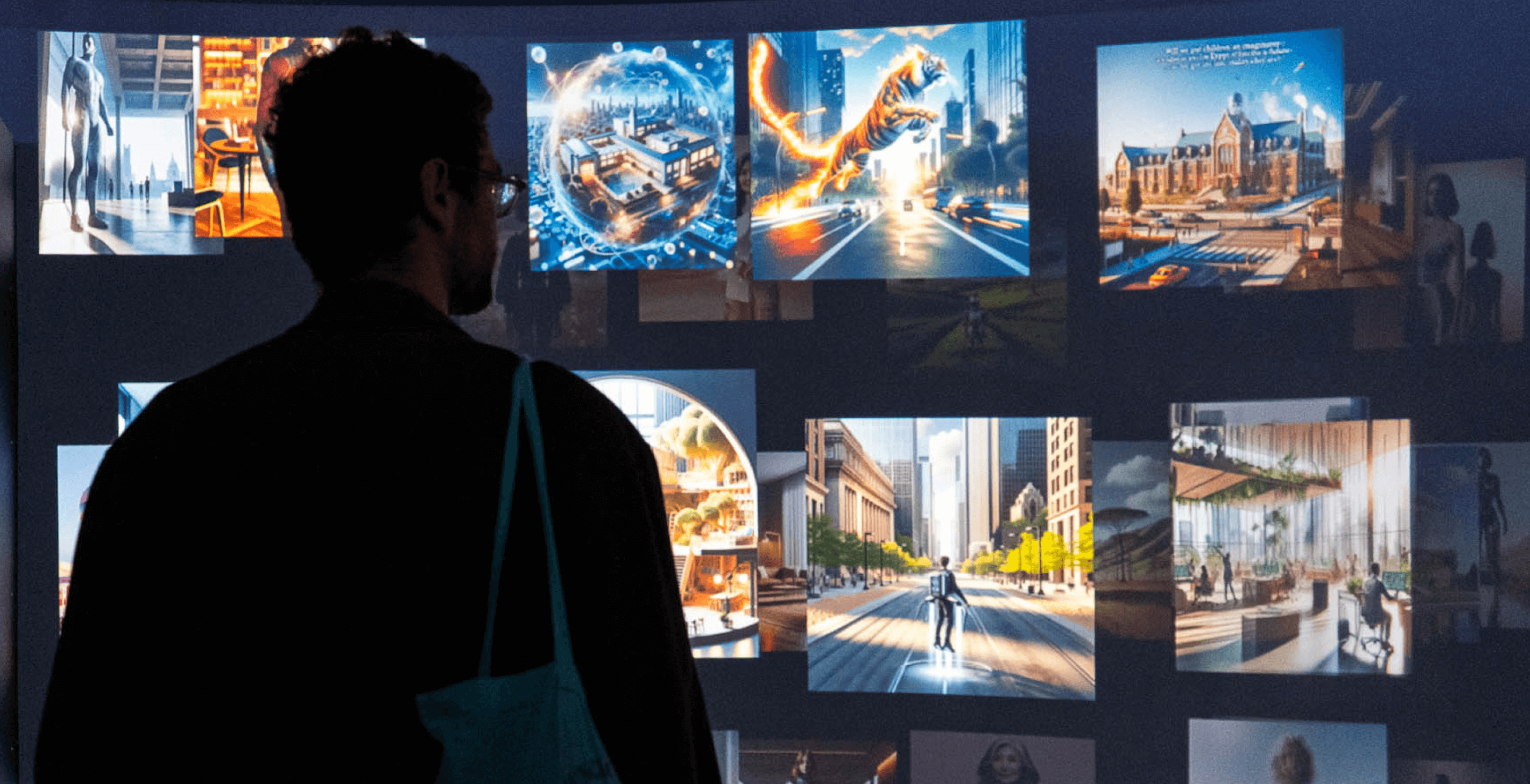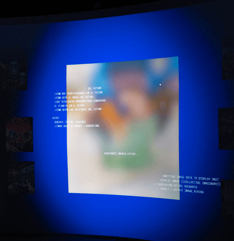 This final piece is designed to prompt a reflection on what lies ahead and to showcase the role of technology in shaping our future - we created a fully immersive experience with a 10-meter-wide screen, lights and sound, inviting visitors to join a collective imagining of what the future could look like.