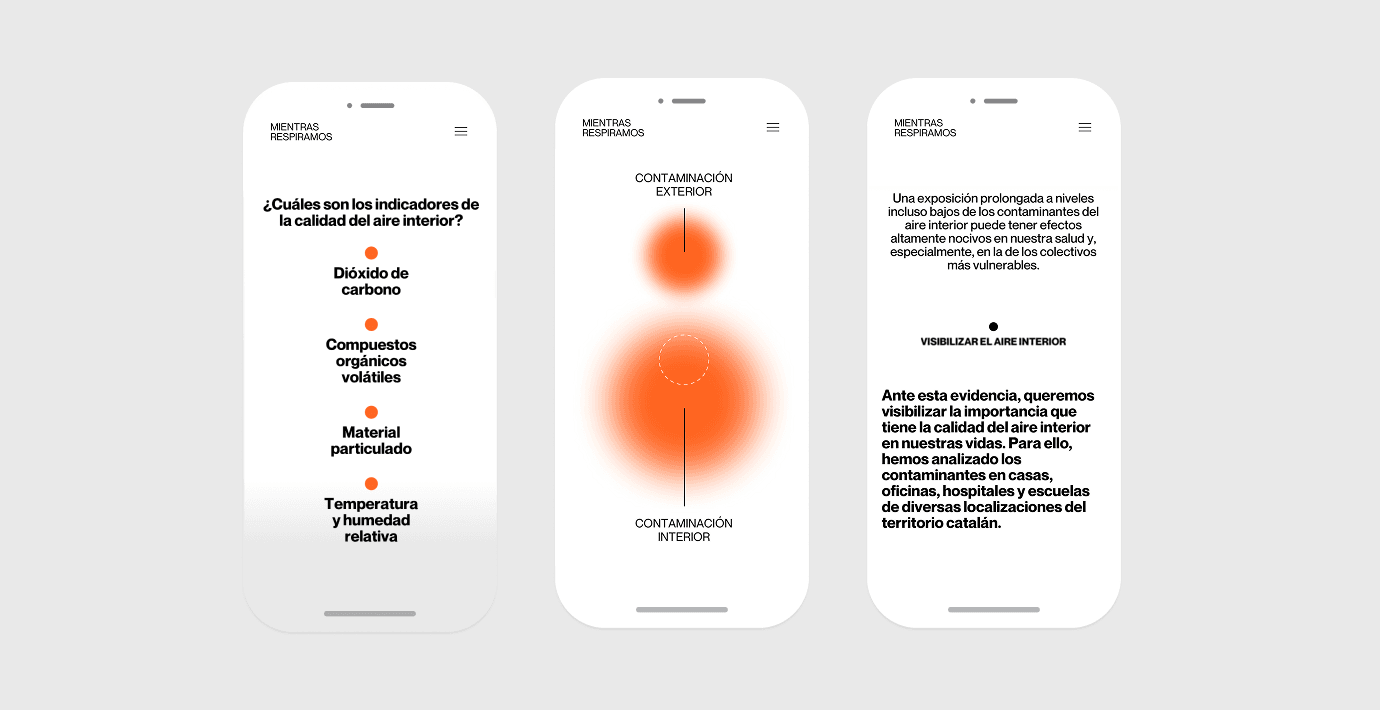 To achieve this, we designed an online experience that aimed to make this largely unknown issue visible to the general population. Our platform communicates scientific data in a straightforward and understandable way, warns about the risks of poor indoor air quality, and provides actionable guidelines for improving air quality at both individual and collective levels.