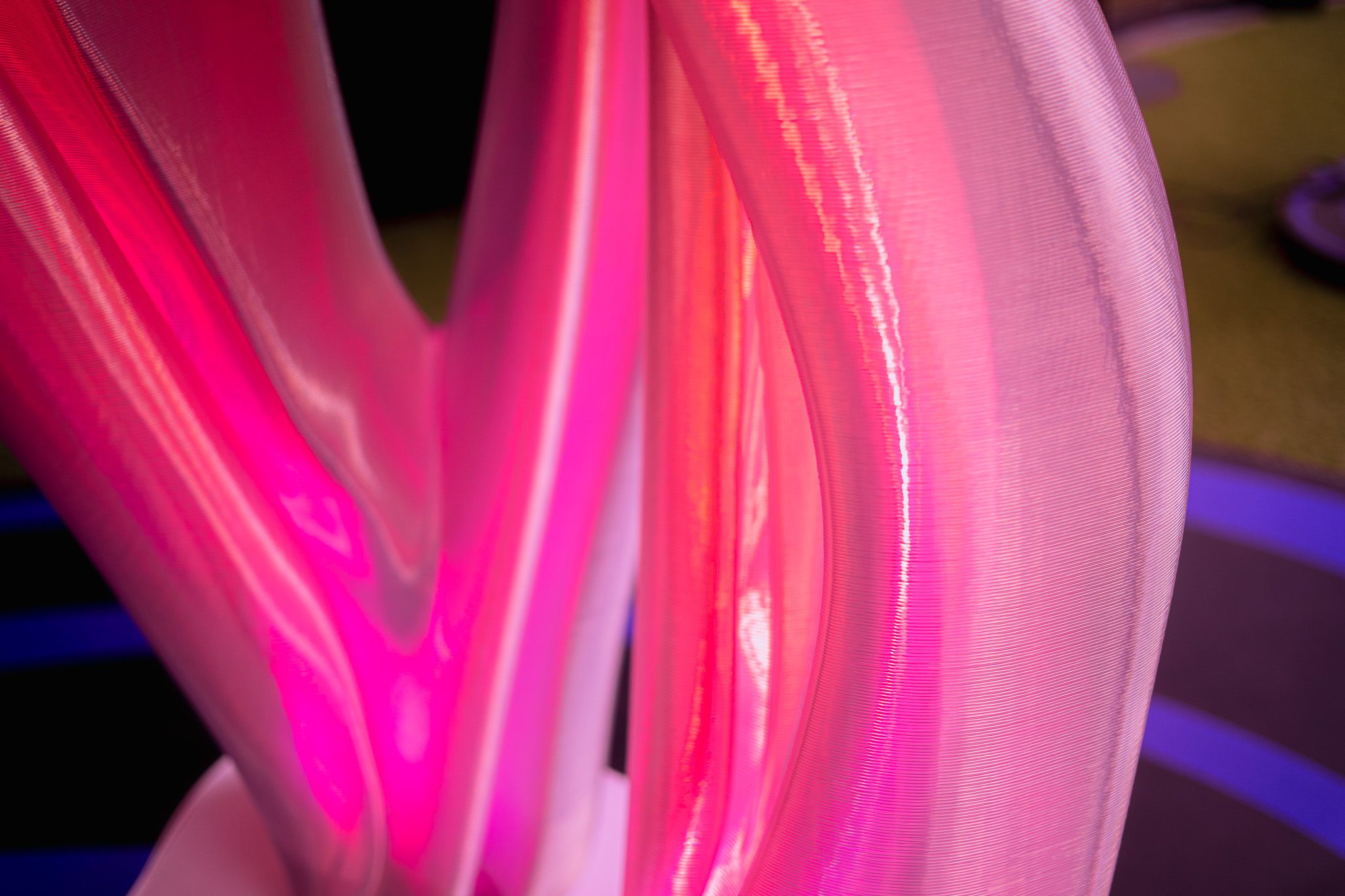 Barcelona Music Lab are on a mission to shape a harmonious digital future for the music industry, they aim to create opportunities and nurture talent. With this sculpture we looked to convey this mission, recycling 5,357 plastic bottles and 3-D printing them into this fluid, natural form.