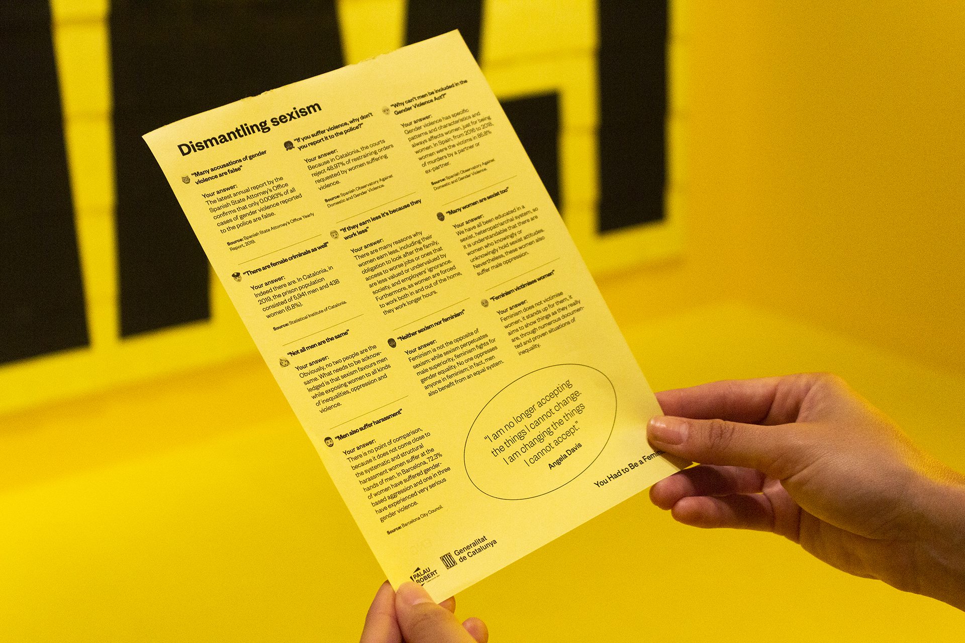 In a time in which feminism is taking up a little bit more space in the public agenda, the Government of Catalonia asked us to create an exhibition on the topic along with curator, activist and writer Natza Farré. The focus was to map the current environment and bring out the daily sexism that patriarchy sadly still manages to impose; to shed some light in those topics that are still unsolved since the 70s like equal pay or the gender gap in healthcare.