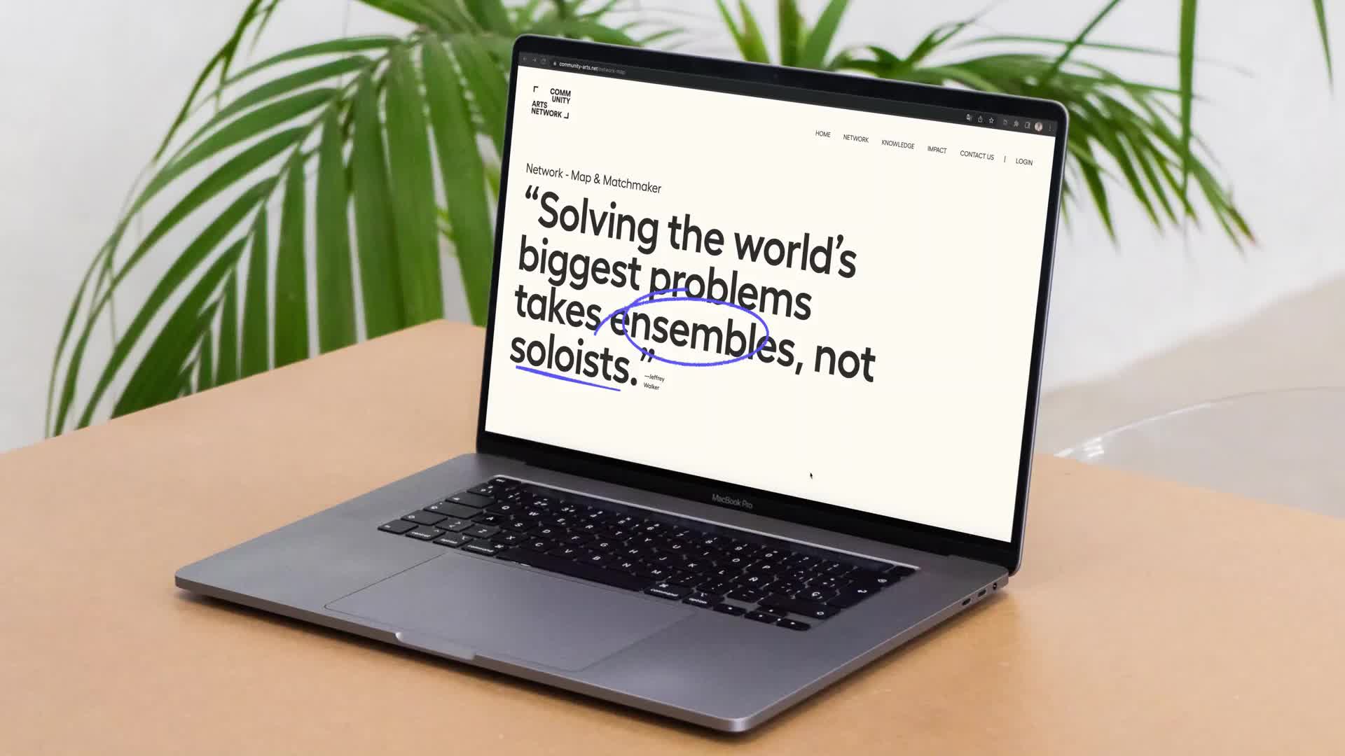 Each page of the website starts with an inspirational quote that reflects the vision of the CAN, and encourages people to engage and become a an active part of network that sees art as a catalyst for impact.