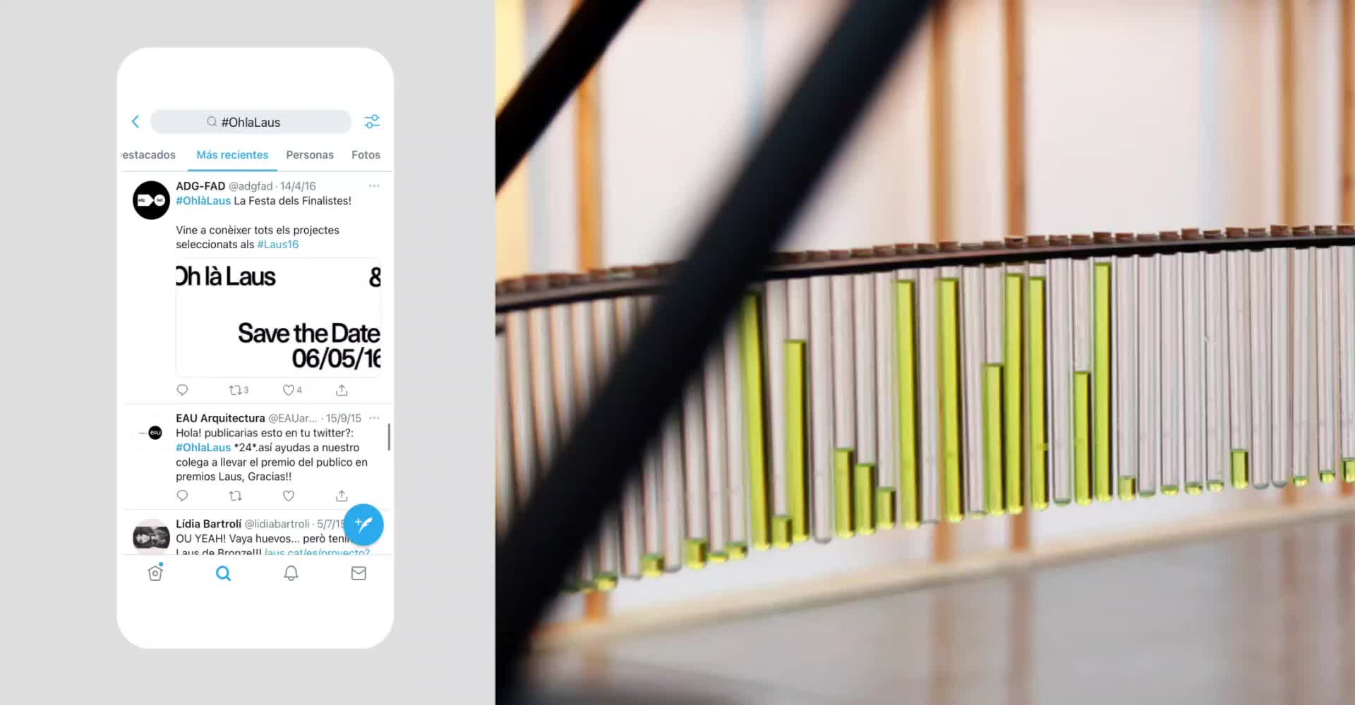 The Audience LAUS Award is given each year to the most voted nominee for the FAD Awards of Design in Spain. The voting is usually made using Twitter, where everyone can vote for their favourite choice using a numerical code. The standards of participation are over 5,000 tweets.