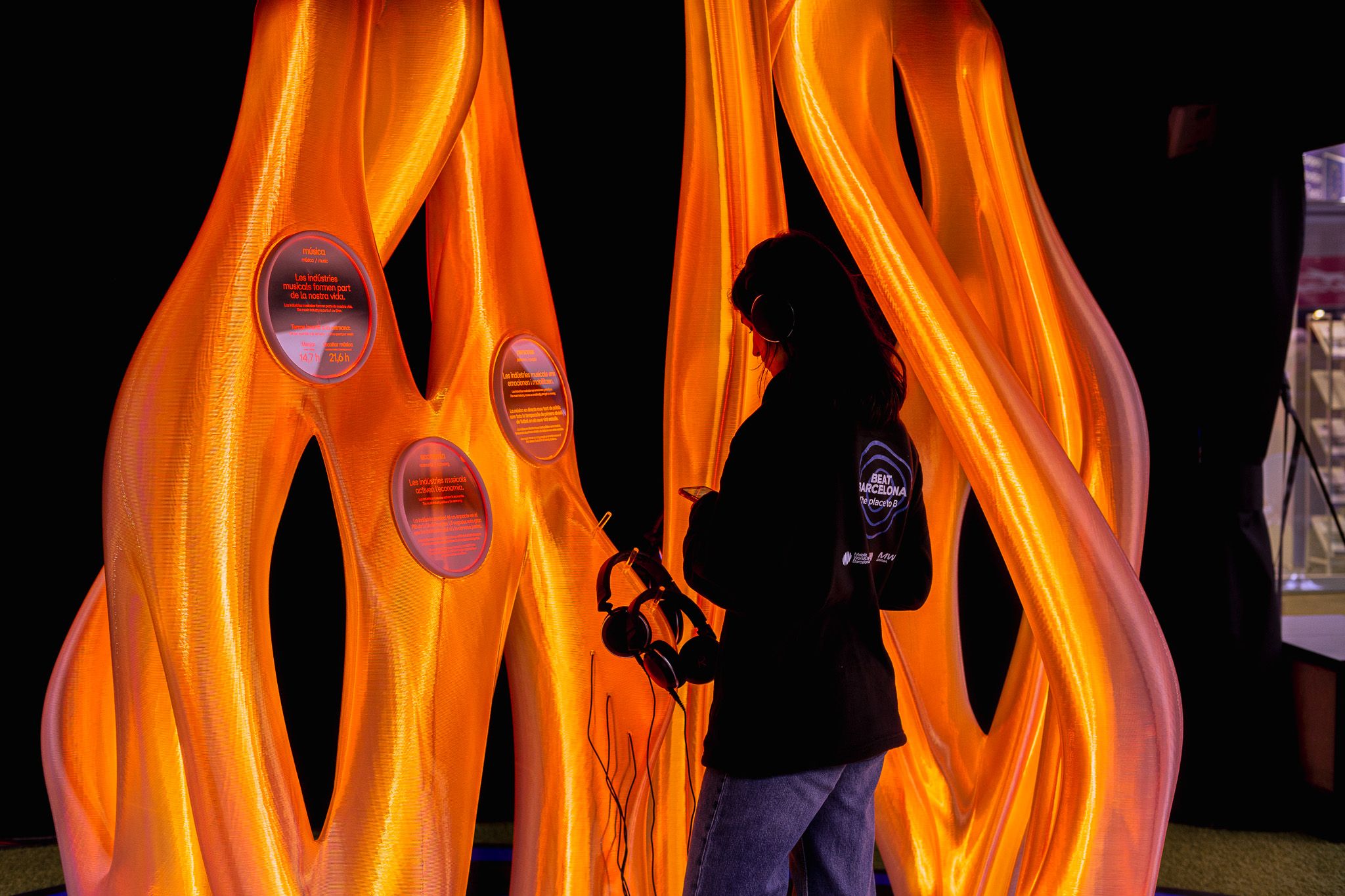 Visitors to the Mobile World Congress could approach the piece and learn about the relationship between innovation, technology and the environment in the music industry. The lights within the sculpture would illuminate to represent the data that was explained over the audio.