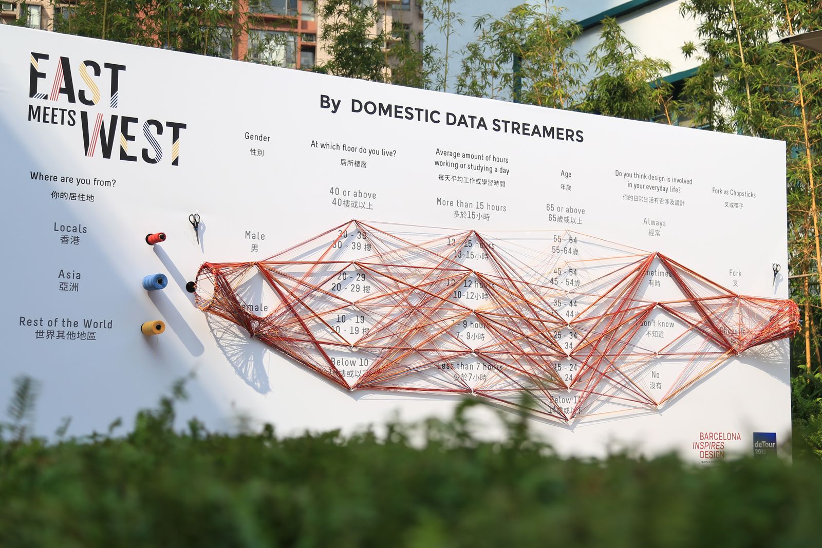 Data Strings is a physical installation that evolves with people’s answers, unveiling social patterns through the information given by the participants. They are asked to answer different questions by weaving their choices around different options, generating a visualization of collective thoughts and facts that enables them to compare their answers with a bigger picture.