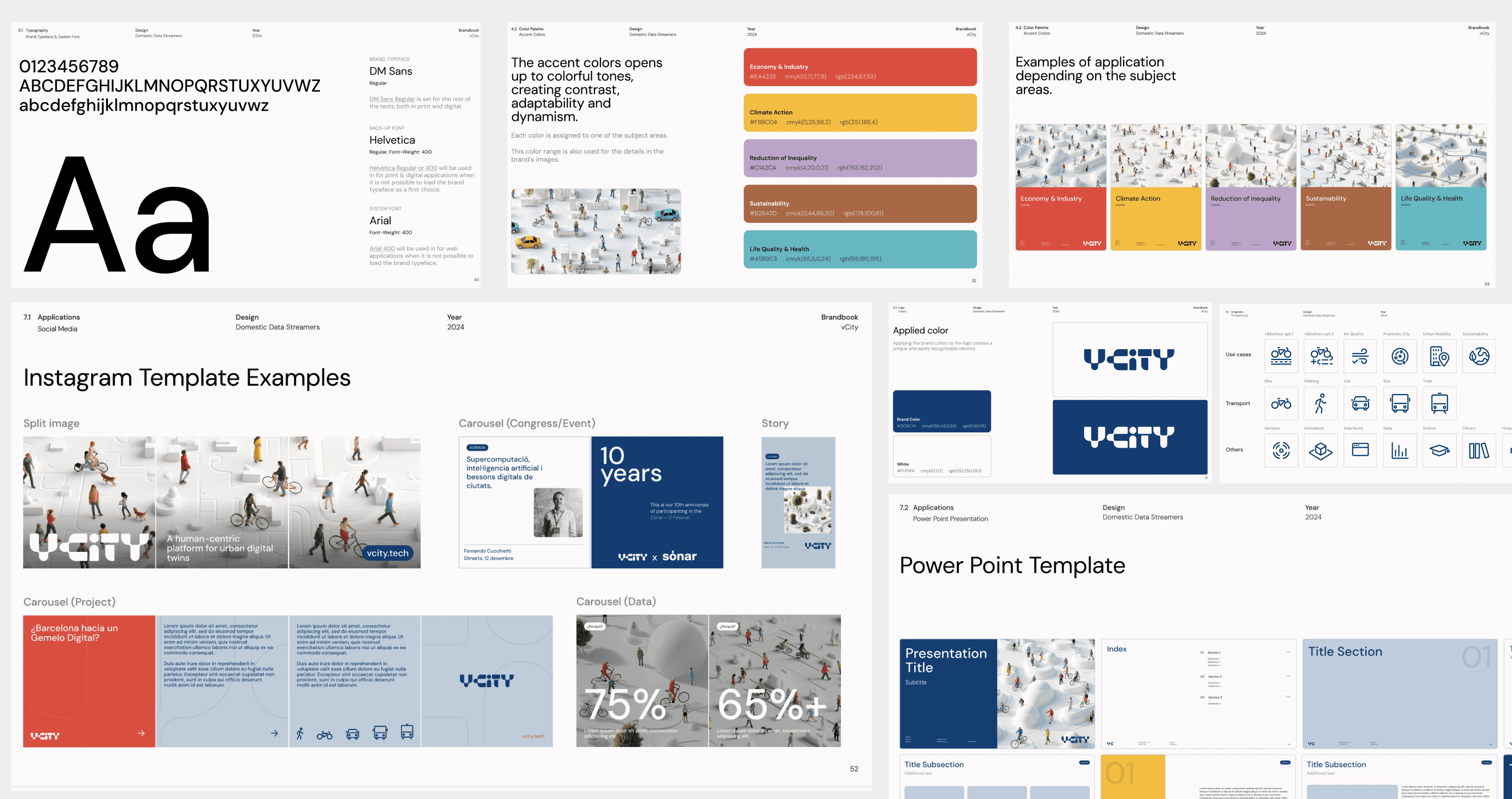 The project involved navigating the complexities of an emerging technology with significant ethical considerations. With a diverse audience—ranging from everyday citizens to expert policymakers—and strong political implications, the challenge was to build a brand that felt both approachable and authoritative. We struck a balance between these tones through thorough research and careful language design. Alongside the brand book, we also created a UI kit to support the team at 300.000 km/s (an urban think tank in Barcelona) in developing the interactive maps that would be integrated into the platform. Additionally, we designed the vCity landing page to clearly introduce the platform’s purpose and functionality to a wide public audience.